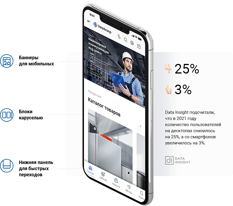 Сайт на решении Аспро: Инжиниринг легко адаптируется под смартфоны и планшеты. Не теряйте трафик с мобильных устройств и уменьшайте количество отказов.